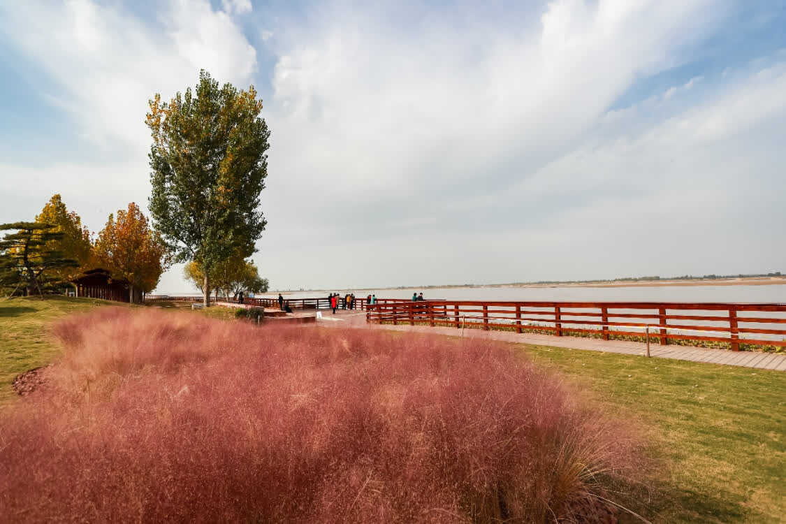 建設中的黃河灘地公園西起江山路,東到花園口黃河大橋,規劃面積44平方公里,共分為黃河濕地生態修復區、濕地片區、黃河生態農業示范區等14個功能區。按照惠濟區委“慢行系統先行,節點推進,水系貫通,分區實施”的要求,灘地公園目前主要建設內容為南裹頭、海事廣場、渡口廣場三個觀景點和九縱三橫22條60多公里彩色慢行道路,黃河自然風光一覽無余。