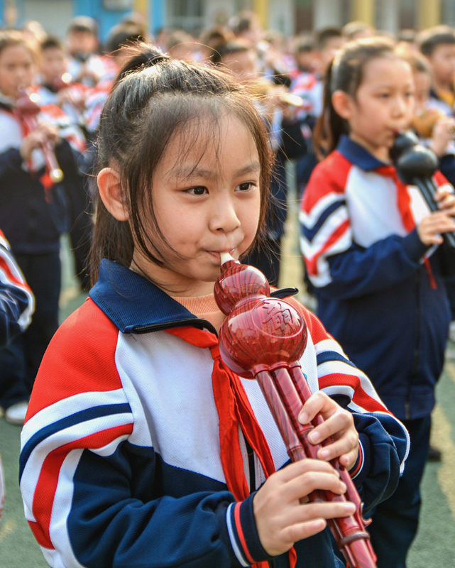2020年11月12日,在邯鄲市邯山區(qū)渚河路小學,學生在練習吹奏葫蘆絲。近年來,河北省邯鄲市邯山區(qū)積極開展“傳統(tǒng)文化進校園”系列活動,充分利用民間傳統(tǒng)文化資源,開設(shè)快板、葫蘆絲等傳統(tǒng)藝術(shù)課,讓學生感受傳統(tǒng)文化的魅力。