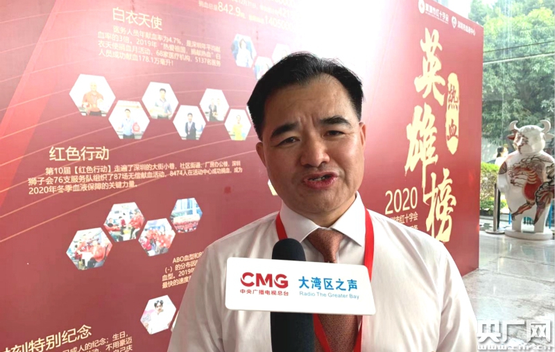 深圳市血液中心書(shū)記盧亮接受采訪(中央廣播電視總臺(tái)大灣區(qū)之聲記者 黃倩 攝)