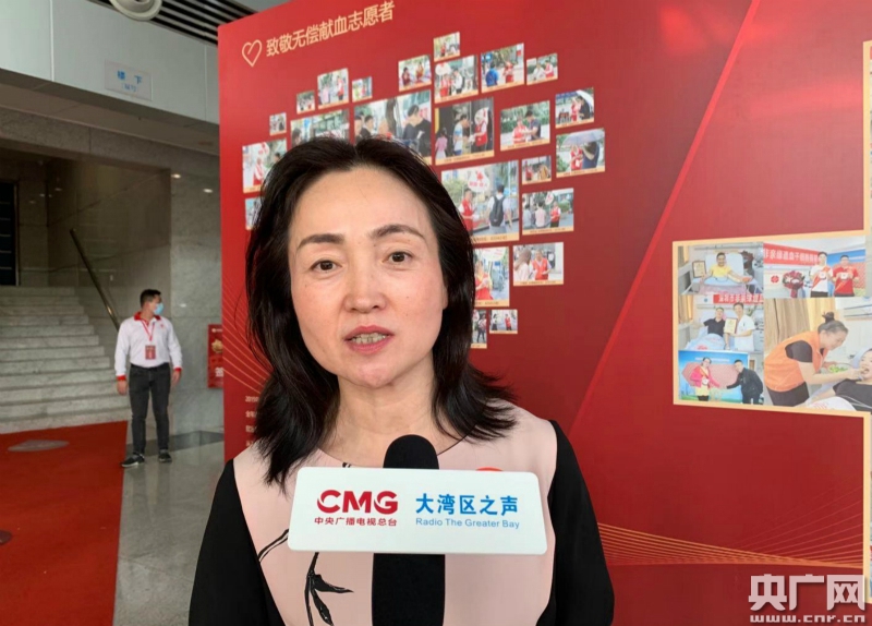 深圳市紅十字會(huì)專(zhuān)職副會(huì)長(zhǎng)兼秘書(shū)長(zhǎng)張英姬接受采訪(中央廣播電視總臺(tái)大灣區(qū)之聲記者 黃倩 攝)