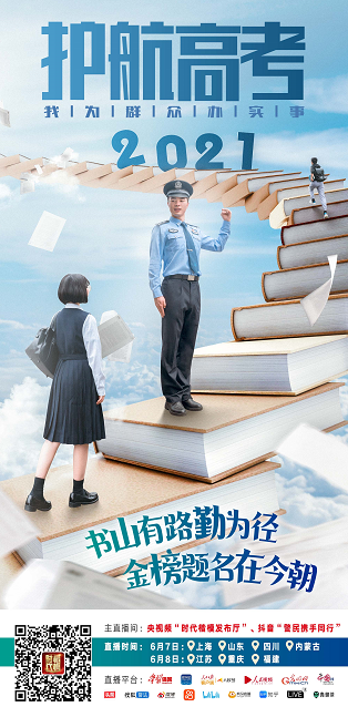 “云”直播將邀請公安英模代表,帶領(lǐng)廣大網(wǎng)友走進內(nèi)蒙古、上海、江蘇、山東、福建、四川、重慶等地高考安保一線,體驗公安機關(guān)護航高考舉措,為考生助力加油。直播以“話題+直播+點贊”的形式記錄2021年高考,見證考生的青春激揚與民警的溫暖守護,生動展示公安機關(guān)全力做好2021年高考安保工作的舉措成效和廣大民警忠誠履職、一心為民的良好精神風貌。