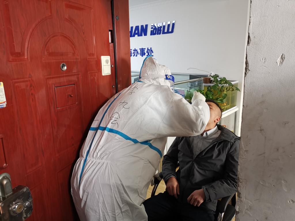 “因為興海路30號院是老舊小區,沒有電梯,我們只能徒步上樓,最高要步行7層樓。”李九會說。西寧城區平均海拔2200多米,在高原穿著防護服頻繁上下樓,心肺面臨沉重負擔。入戶采樣完畢后,工作人員防護服內全是汗,而室外只有幾攝氏度,他們經歷著心理和生理的雙重考驗。