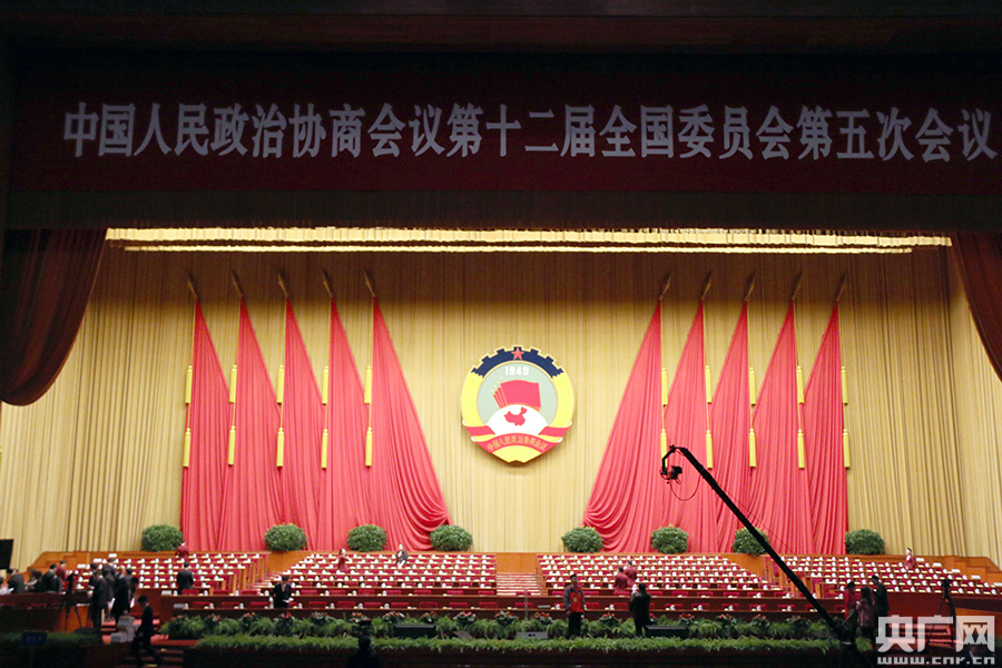 全國政協十二屆五次會議閉幕會定于3月13日上午9時30分在人民大會堂舉行。圖為閉幕會現場。央廣網 吳海波 攝