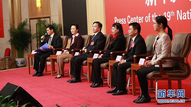 10月23日,十九大新聞中心舉辦集體采訪活動(dòng),主題為“打好生態(tài)環(huán)保攻堅(jiān)戰(zhàn)”。圖為集體采訪活動(dòng)現(xiàn)場(chǎng)。新華網(wǎng) 郝廣鵬攝