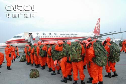 中廣網呼和浩特5月15日消息(記者鄭穎 通訊員王喚、高智慧)2008年5月14日下午16時30分,內蒙古消防總隊赴川抗震搶險救援隊153名官兵和隨行記者,乘包機趕赴四川災區。經過2小時15分的飛行,晚18時50分救援隊順利抵達成都雙流機場。經過簡單整理,晚20點50分救援隊連夜趕往目前綿陽災區4個交通完全中斷的“孤島鎮”之一——南壩鎮。