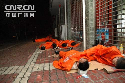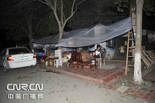 15日凌晨零點20分,救援隊進入綿陽市區。在市區公路兩側,隨處可見市民搭建的臨時帳篷,有的把私家車開到路邊空曠地帶,支起防雨布休息,有的干脆在馬路邊席地而睡。隨著汽車的快速前進,官兵們的心情就越發不平靜,立即趕赴災區的愿望也就更加迫切。看在眼里,急在心中,恨不得馬上趕到震中災區,去幫助那里那些無助的群眾。