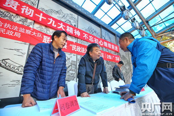 央廣網(wǎng)北京11月8日消息(記者孫濤 任曉宇)今日,北京市民政綜合執(zhí)法監(jiān)察大隊與海淀區(qū)民政局聯(lián)合開展了“民政法制宣傳進(jìn)社區(qū)”活動,以擺放宣傳展板、發(fā)放宣傳材料和調(diào)查問卷以及接待群眾現(xiàn)場咨詢等方式,為社區(qū)居民第一時間傳達(dá)黨的十九大精神,普及民政法律知識。
