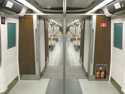 10號(hào)線一期列車(chē)車(chē)廂拉環(huán)與坐椅間距較大,方便乘客放置大件行李,坐椅呈縱橫布置,乘坐更舒適。