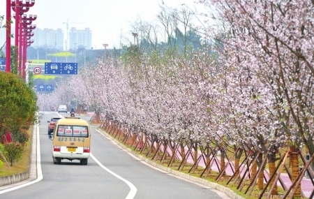 “櫻花盛開期,往往只有一個星期。但我們采取早、晚櫻科學混栽,賞櫻期可持續30-40天,3月中旬起到4月中旬,都是賞花好時候!”眉山市岷東新區管委會黨工委書記王岳說,3月20日開始,眉山櫻花將迎來盛花期,屆時將是滿城盡帶紅粉櫻!