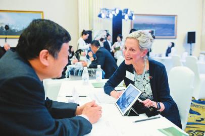 相聚 第四屆中美省州長論壇上,兩國各地嘉賓相聚成都。本版圖片由 本報記者 郝飛 攝