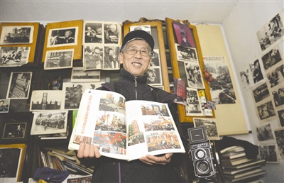每天上午,他都會掛著一個用了15年的破洞帆布相機包,裝兩臺徠卡相機,行走在成都的大街小巷。“我拍成都拍了40年。”王曉莊把家里的一間房改成工作室,膠卷裝滿了三個水桶,底片有30萬張,手沖的照片粘滿了墻壁和書柜,匯集著各種成都人的生活。
