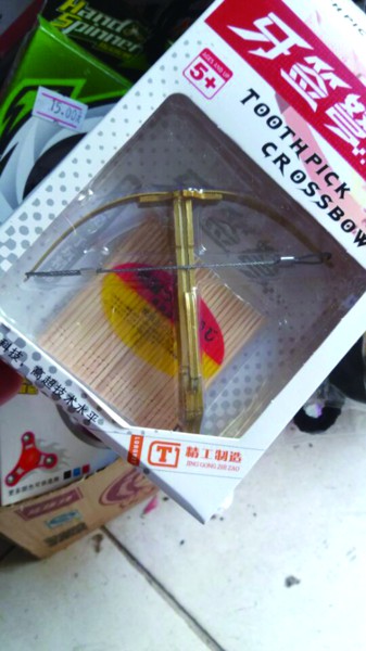 記者在濟南市區幾所學校附近的小商店并沒有見到這種“牙簽弩”。但隨后,濟南科苑小學、義和小學、名士小學的家長告訴記者,他們在學校附近的小商店里的確看到過這種“牙簽弩”有銷售。