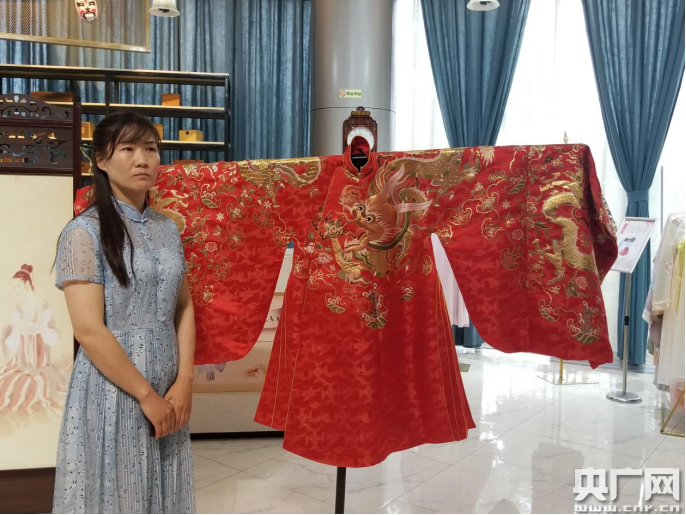 孟曉霞展示自行設(shè)計的漢服