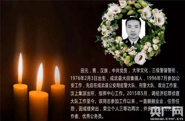 田元,男,漢族,中共黨員,大學(xué)文化,三級(jí)警督警銜,1976年2月3日出生,成武縣大田集鎮(zhèn)人,1996年7月參加公安工作,先后在成武縣公安局巡警大隊(duì)、刑警大隊(duì)、政治工作室、汶上集派出所、指揮中心工作。2015年5月,調(diào)經(jīng)濟(jì)犯罪偵查大隊(duì)工作至今。該同志參加工作以來(lái),一直兢兢業(yè)業(yè),任勞任怨,因成績(jī)突出,榮立個(gè)人三等功兩次,并多次被評(píng)為先進(jìn)工作者、優(yōu)秀公務(wù)員。