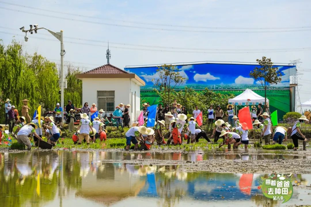 按照老農示范的株距行距,左手握住秧苗、右手分苗插秧……今日芒種,一大早,36組家庭相聚外岡鎮,一同開展“帶著爸爸去種田”第八季親子體驗活動。