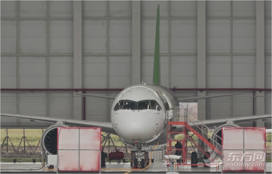 近日,為確保C919大型客機首飛成功,對C919設計結果、制造狀態、試飛和客服工程準備工作進行確認,中國商用飛機有限責任公司在上海組織召開了C919首飛技術評審會。評審委員會一致同意通過C919首飛技術評審。同時,建議在完成電磁兼容等試驗及滑行試驗驗證后可提請首飛放飛評審,這標志著C919向著首飛目標又邁出了堅實的一步。圖為:中國國產大飛機c919正在上海浦東機場機庫中調試。