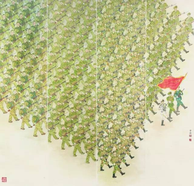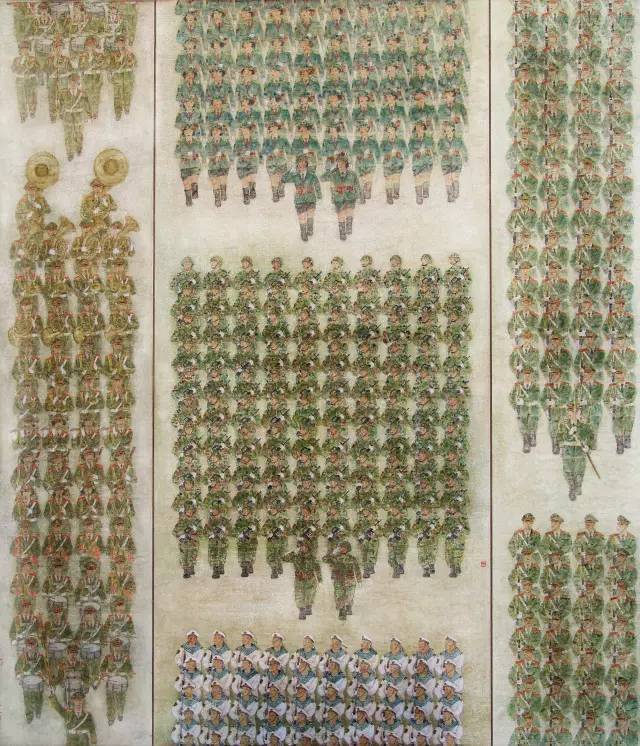 這四位藝術家分別來自于陸軍,海軍,空軍,武警部隊,他們的畫卷不僅藝術地再現了中國人民解放軍光榮的歷史歲月,同時也生動地描繪了當今中國軍人多姿多彩的軍旅生活,充分展現了中國人民解放軍這支文明之師,威武之師的光輝形象。