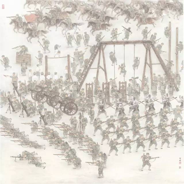 2014年9月,油畫《突擊》入選第十二屆全國美術大展。(浙江美術館)