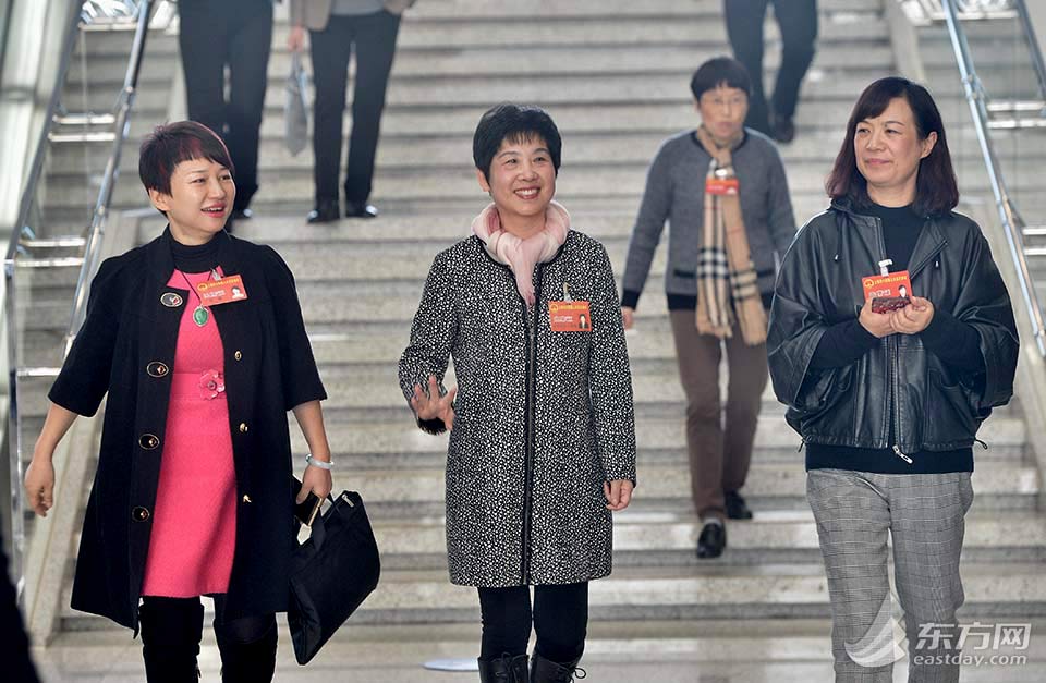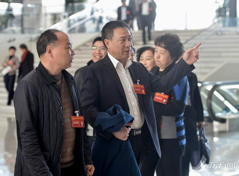 今天下午,上海市第十四屆人民代表大會第五次會議在上海世博中心舉行預備會議。會議開始前,來自全市各行各業的人大代表們邊交流邊步入會場。