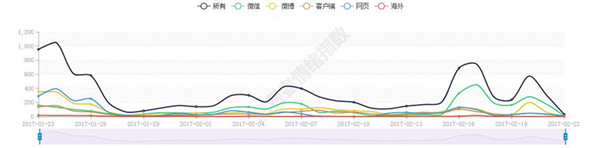 《報告》顯示,在數據監測的30天內(1月23日-2月20日),網絡上曾出現過兩個輿情高峰(見圖一),分別為春節前的1月24日前后及春節后的2月16日前后,微信和微博則是輿情信息的兩大主要傳播渠道。