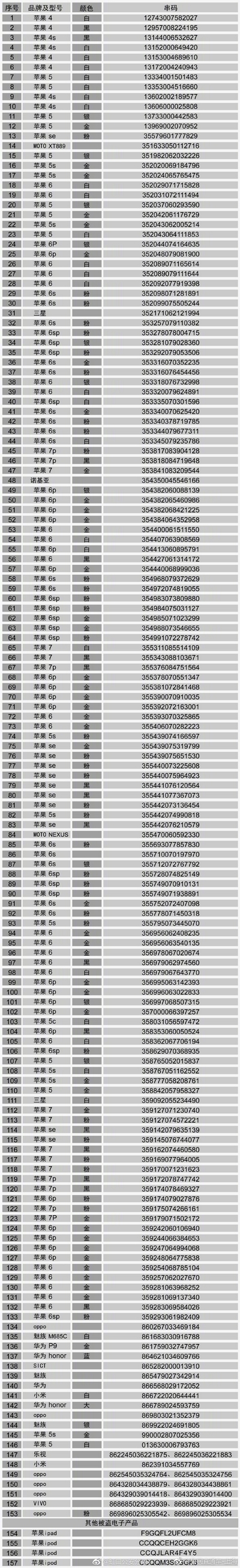 據新民網消息 5月初,上海虹口公安分局圍捕了一個集扒竊、轉贓、銷贓一體的犯罪團伙,繳獲大量手機。目前還有150多部手機及電子產品因沒報案而無人認領,現在公布品牌型號及串碼。如發現自己手機,請于周一至周五8:30—17:30撥打電話:63098201,聯系李警官、王警官。