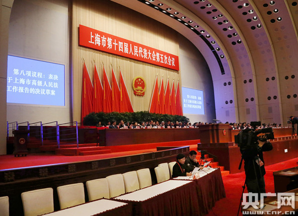 上海市十四屆人大五次會議高票通過崔亞東所作的《上海市高級人民法院工作報告》