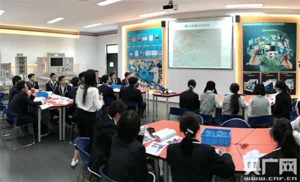 上海理工大學附屬中學創新實驗室課程《工程與機械》:港口裝卸儲運系統——門式起重機的體驗及應用(央廣網記者唐奇云 攝)