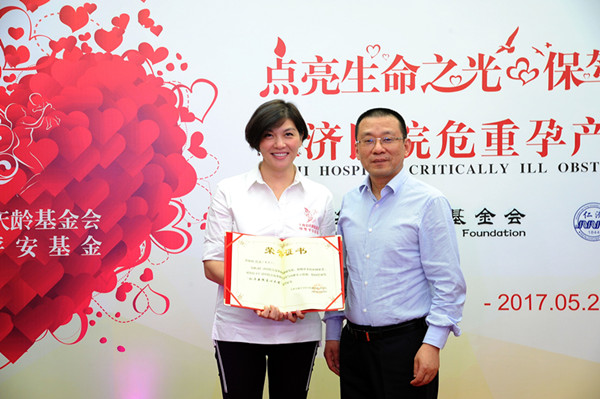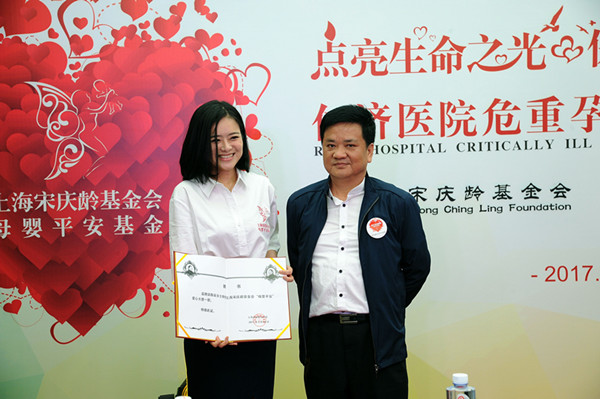 上海市宋慶齡基金會代秘書長賈勇為陳辰授牌“母嬰平安愛心大使”