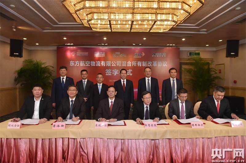 央廣網上海6月19日消息(記者吳善陽)中國東方航空集團公司旗下東方航空物流有限公司開展國家民航領域混合所有制改革試點取得重大成果。今天,東航集團與聯想控股股份有限公司、普洛斯投資(上海)有限公司、德邦物流股份有限公司、綠地金融投資控股集團有限公司等四家投資者,以及東航物流核心員工持股層代表,在上海正式簽署增資協議、股東協議和公司章程。這標志著國家首批推進的“七大領域”混合所有制改革試點在民航領域實現“落地”;標志著東航集團主動適應經濟發展新常態,進一步做“優”做“活”國有企業,探索混合所有制改革取得實質性成效;標志著東航集團、聯想控股、普洛斯、德邦、綠地和員工持股層所代表的各種所有制資本,緊密融合、共贏發展、共同打造中國民航領域混合所有制改革的“第一樣本”。