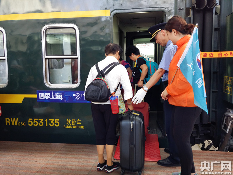 旅客們拖著行李踏進“四季上海-喀什號”援疆旅游專列 央廣網記者林馥榆 攝