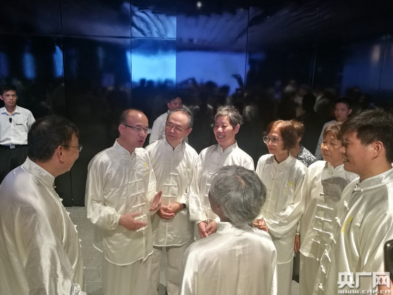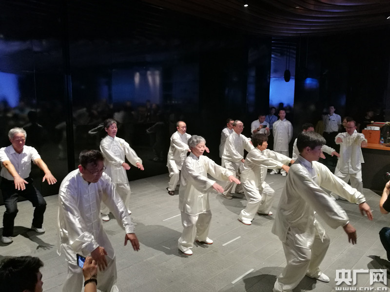 郭廣昌、郭昌武帶領大家一起打起了太極拳 央廣記者傅聞捷 攝
