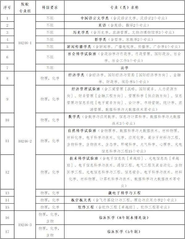 綜合評價批招生專業(類)院校專業組參考目錄和選考科目要求