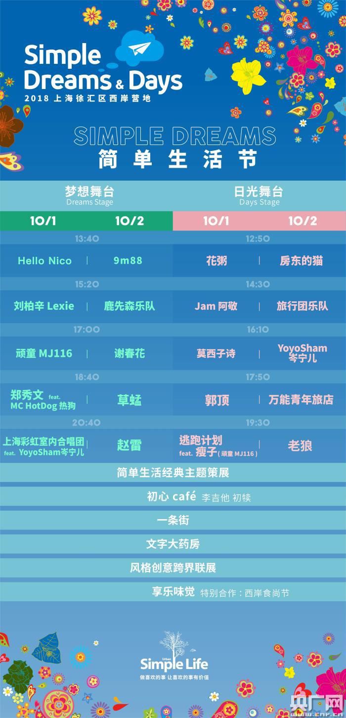 2018簡單生活公園節目單(央廣網發 上海簡單生活節組委會供圖)
