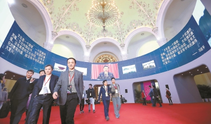 360度環幕影片《江海交匯 國之重托》呈現了長三角文化產業欣欣向榮的發展景象。記者 蔣迪雯 攝