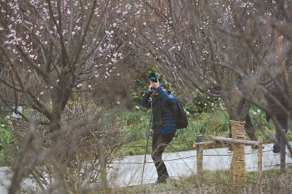 圖片說明:今冬梅花早早綻放,引來市民欣喜拍攝。記者海沙爾攝