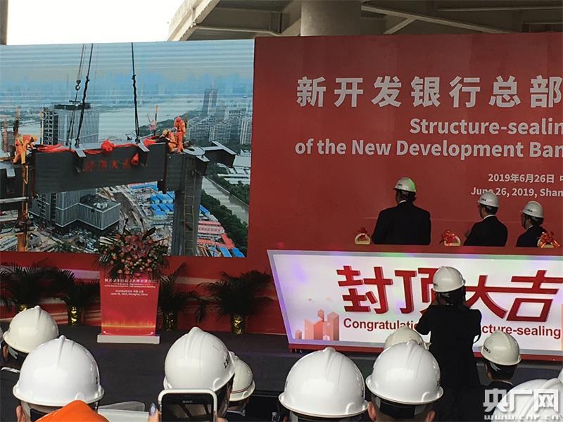 6月26日,新開發銀行大樓封頂。(央廣網記者 吳善陽 攝)