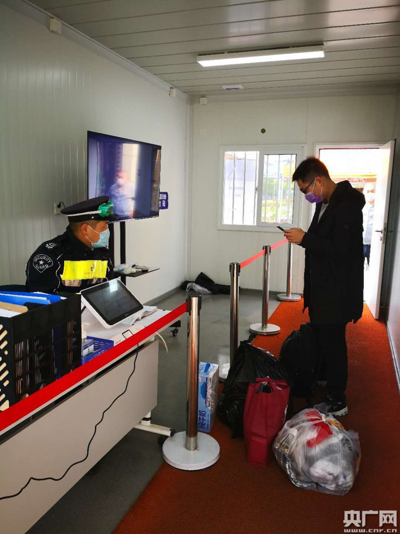 返校學生正在測溫箱內接受測溫和查證(央廣網發 復旦大學供圖)