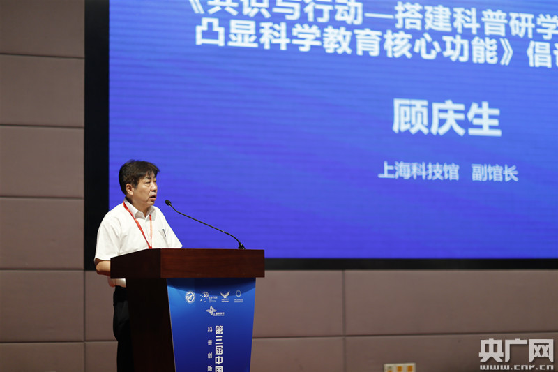 在開幕式上,上海科技館副館長顧慶生發布《共識與行動——搭建科普研學合作平臺,凸顯科學教育核心功能》倡議書。并作主旨報告《從場館資源到研學課程:探索與實踐》。