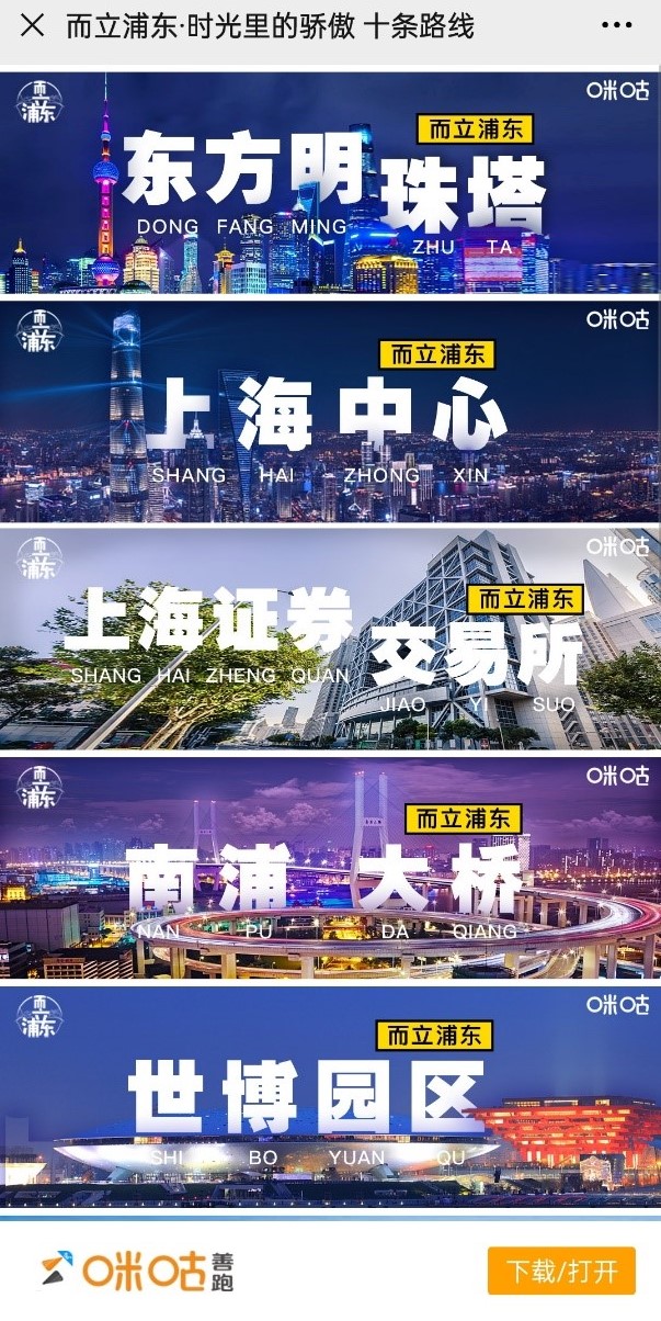 除視頻展播外,“而立浦東·時(shí)光里的驕傲”線上跑活動(dòng)也在咪咕善跑等平臺(tái)推出,以《而立浦東》紀(jì)錄片中出現(xiàn)的地標(biāo)性建筑為打卡目標(biāo),如上海中心、東方明珠塔、世博園等,這些打卡點(diǎn)或是伴隨著浦東開發(fā)開放而誕生的重大項(xiàng)目,或是浦東開發(fā)開放之后豎立的新地標(biāo)性建筑,見證著浦東開發(fā)開放30年的歷史變遷。參與者能夠在運(yùn)動(dòng)中感受上海的城市脈搏,用足跡丈量浦東的發(fā)展歷程,同時(shí)領(lǐng)略浦東開發(fā)開放的恢弘成就。