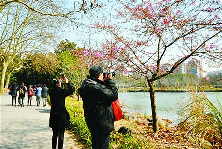 寒櫻是上海地區(qū)開花最早且較穩(wěn)定、觀賞效果最佳的早櫻,有上海櫻花季“風(fēng)向標(biāo)”的美譽(yù)。“上海植物園大規(guī)模種植櫻花已有20年,可以說(shuō)今年這批的花期是最早的。”上海植物園園藝專家朱繼軍介紹說(shuō),早在2月4日,也就是春節(jié)長(zhǎng)假過后的第二個(gè)工作日,植物園內(nèi)的一棵寒櫻就已開花,比去年提前了兩周。昨天,園內(nèi)的河津櫻也開了近兩成,而去年河津櫻開到這個(gè)規(guī)模,起碼等到2月25日。