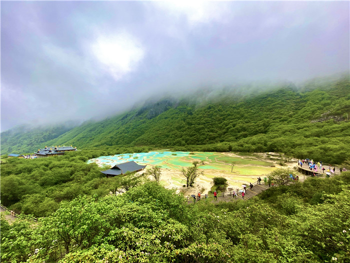 黃龍國家級風景名勝區(qū)以“彩池 灘流 瀑布 雪山 古寺”五絕著稱,集世界自然遺產(chǎn)、世界人與生物圈保護區(qū)、國家地質(zhì)公園和國家5A級景區(qū)等多項桂冠于一身。其獨特的高寒喀斯特地貌,使得黃龍景區(qū)成為鈣華彩池的聚集地。3000多個鈣華彩池鋪展在僅3.5公里的黃龍溝,層層疊疊,姿態(tài)各異,美輪美奐,蜚聲中外,因此有著“人間瑤池·圣地黃龍”的美譽。
