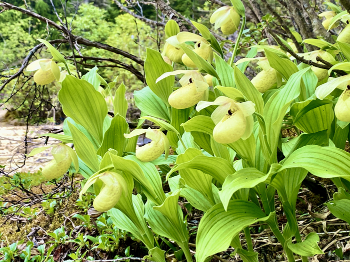 每年6月,漫步在黃龍景區(qū),就有機會探訪兩萬多株高山蘭花形成的奇幻秘境。開著米黃色花朵的黃花杓蘭、紅花的西藏杓蘭,以及棕色和金黃色相間的無苞杓蘭在這里形成了一個罕見的杓蘭群落。一只只色彩斑斕的“拖鞋”,散落在黃龍綠油油的草地上、金燦燦的水流邊,或是鑲嵌在五彩斑斕的彩池邊,給人以無窮遐想。