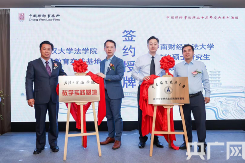 當(dāng)天,武漢大學(xué)法學(xué)院法學(xué)教育實踐基地、中南財經(jīng)政法大學(xué)法律碩士研究生實踐創(chuàng)新基地同時簽約授牌落戶中聞律師事務(wù)所,校所雙方將在人才聯(lián)合培養(yǎng)、教育教學(xué)等領(lǐng)域開展合作。與會專家學(xué)者還圍繞加強長江經(jīng)濟帶不良資產(chǎn)法律服務(wù)、促進長江經(jīng)濟帶高質(zhì)量發(fā)展展開探討。