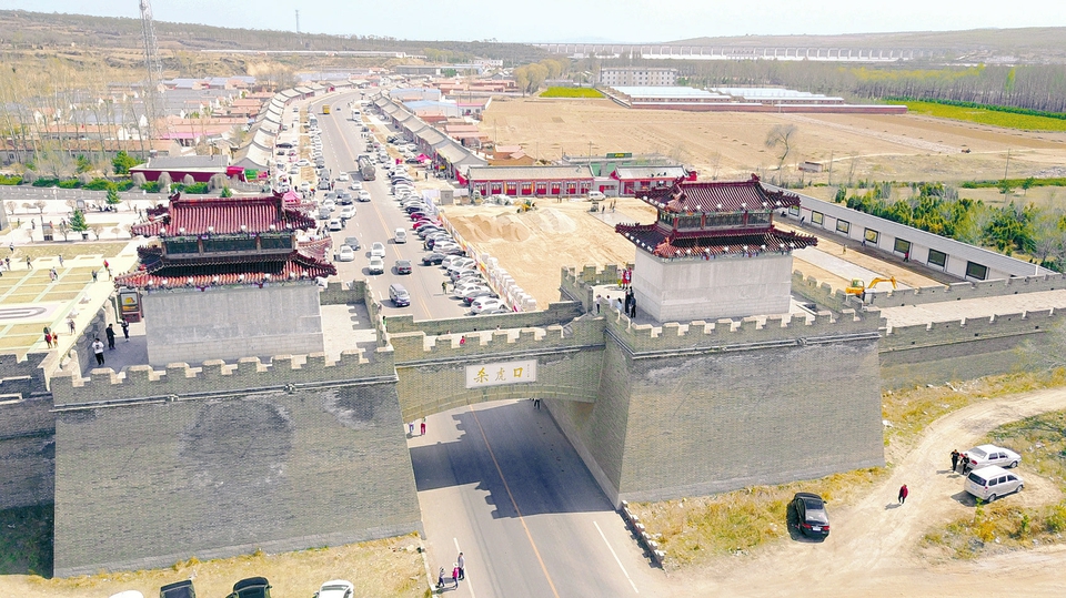 4月30日,游客在右玉殺虎口景區感受“西口文化”。作為古代的軍事要塞和邊貿重鎮,這里雄偉壯觀的古長城以及晉商駝隊的印跡,吸引了越來越多的游客。山西日報記者 孫榮祥 攝