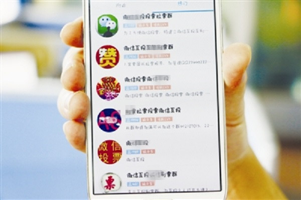 有的參與者不滿足親朋好友有限的票數,還會選擇花錢刷票,用錢搞定。在網上搜索“微信投票”,立馬彈出不少幫助刷票、拉票商家的廣告頁面。記者挑選排名靠前的兩家公司咨詢,兩家的工作人員均表示,只要客戶提供投票的鏈接,就能完成客戶所需要的票數。同時,根據鏈接進入的難易程度,每票的價格在0.15元到0.25元左右。其中一家公司的工作人員稱,刷票數在1萬條以下的都不算是多,并表示他們在全國擁有刷票會員進行人工刷票,一般不會被檢測出作弊。