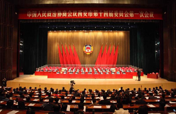政協西安市第十四屆委員會第一次會議閉幕大會現場。