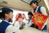 1月12日,春運前一天,西安客運段的乘務(wù)員們?yōu)榱私o車廂營造出暖暖的年味兒,購買了窗花、對聯(lián)、福字等節(jié)日喜慶物品裝飾車廂,讓春運期間回家過年的旅客一邁進車廂便能感受到濃郁的年味氣息。同時,他們還組織開展了“迎新春、送福字”活動,讓旅客帶福回家,與家人共度新春佳節(jié)。(通訊員 王曙天)