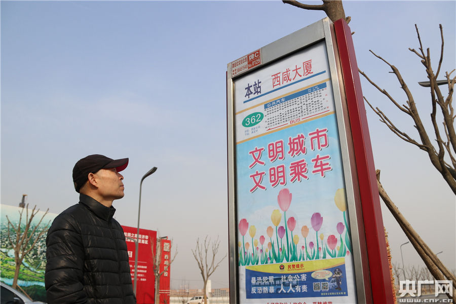 一位西安市民在362路公交西咸大廈站查看線路。央廣網(wǎng)記者 舒隆煥 攝 -