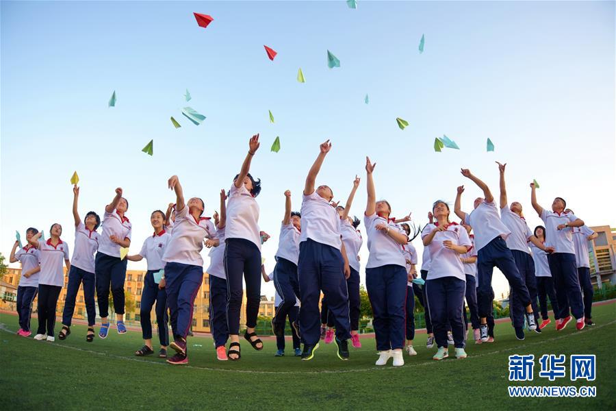 6月2日,河北省衡水市冀州中學高三學生放紙飛機,舒緩心情。