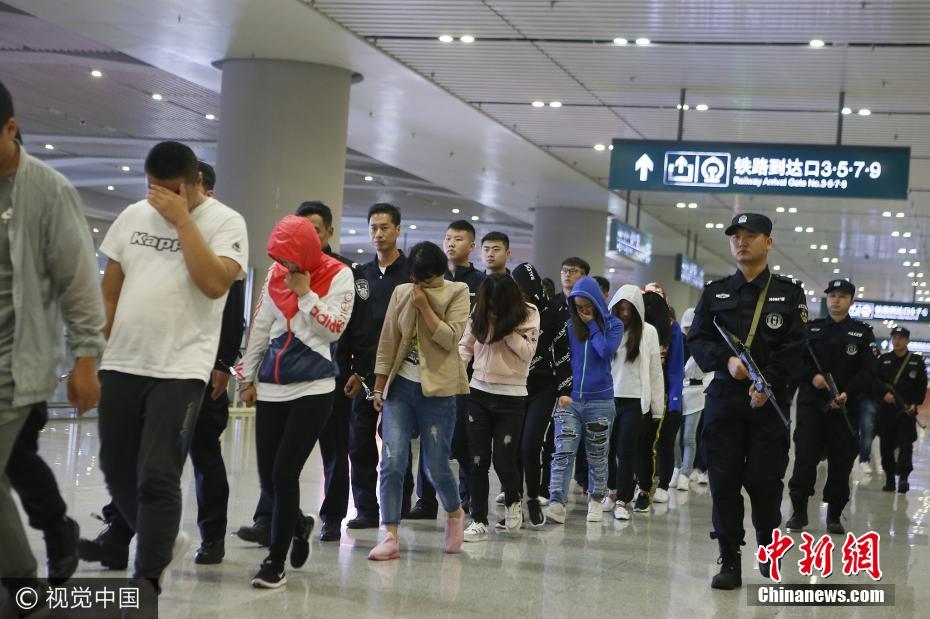 •   9月4日,涉嫌網絡詐騙嫌疑人被押回西安。利用微信和支付寶,詐騙西安市民40萬元,公安航天分局歷時兩個月,跨省抓獲25名嫌疑人,昨晚從黑龍江押解回西安。西安市公安局航天分局辦案民警介紹,今年上半年,該局接到一市民報警稱,其被人利用微信、支付寶等網絡手段,騙走40余萬元。該局迅速成立專案組,組織偵破。張杰攝 圖片來源:視覺中國